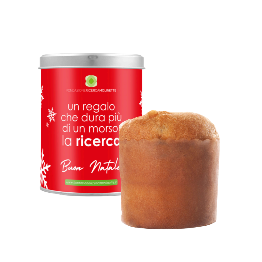 Panettoncino classico con uvetta e canditi 100 g in lattina con chiusura ermetica e coperchio riutilizzabile e 100% riciclabile con etichetta personalizzata.